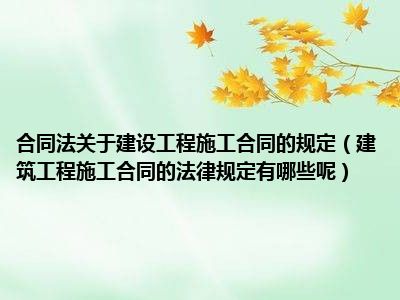 目前大家应该是对建筑工程施工合同的法律规定有哪些呢比较感兴趣的,所以今天CC就来为大家整理了一些关于建筑工程施工合同的法律规定有哪些呢方面的相关知识来分享给大家,希望大家会喜欢哦。