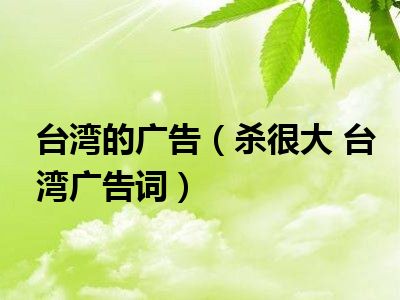 导读 目前是有很多朋友们对于杀很大 台湾广告词这个信息比较感兴趣,那么小编也是收集了一些杀很大 台湾广告词相关的信息来分享给大家,希望你...