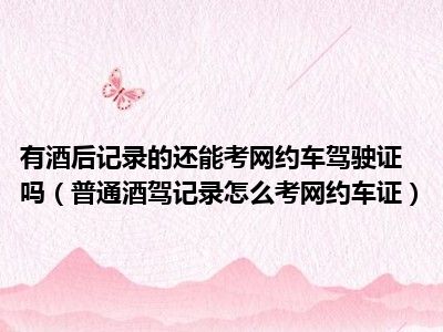 目前大家应该是对普通酒驾记录怎么考网约车证比较感兴趣的,所以今天CC就来为大家整理了一些关于普通酒驾记录怎么考网约车证方面的相关知识来分享给大家,希望大家会喜欢哦。