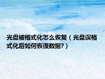 相信目前很多小伙伴对于光盘误格式化后如何恢復数据?都比较感兴趣,那么小编今天在网上也是收集了一些与光盘误格式化后如何恢復数据?相关的信息来分享给大家,希望能够帮助到大家哦。