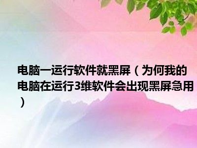 相信目前很多小伙伴对于为何我的电脑在运行3维软件会出现黑屏。。急用都比较感兴趣,那么小编今天在网上也是收集了一些与为何我的电脑在运行3维软件会出现黑屏。。急用相关的信息来分享给大家,希望能够帮助到大家哦。