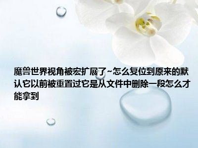 导读相信目前很多小伙伴对于魔兽世界视角被宏拉远了~怎么调回原本的默认,以前调回来过,是删除一个文件里的一段话,请问怎么弄?都比较感兴趣,那...