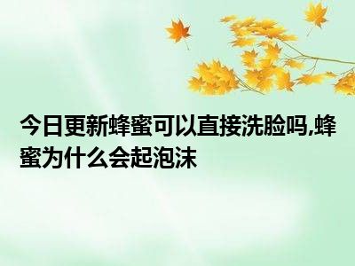 目前大家应该是对蜂蜜可以直接洗脸吗,蜂蜜为什么会起泡沫比较感兴趣的,所以今天小编CC就来为大家整理了一些关于蜂蜜可以直接洗脸吗,蜂蜜为什么会起泡沫方面的相关知识来分享给大家,希望大家会喜欢哦。