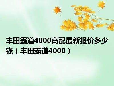 导读目前是有很多朋友们对于丰田霸道4000这个信息比较感兴趣,那么小编也是收集了一些丰田霸道4000相关的信息来分享给大家,希望你会喜欢哦。...