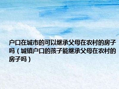 目前大家应该是对城镇户口的孩子能继承父母在农村的房子吗比较感兴趣的,所以今天CC就来为大家整理了一些关于城镇户口的孩子能继承父母在农村的房子吗方面的相关知识来分享给大家,希望大家会喜欢哦。