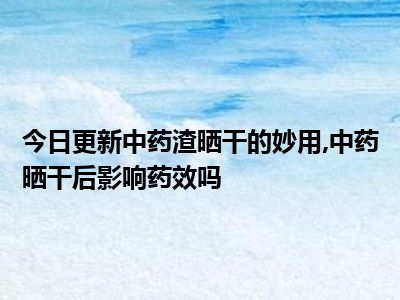 目前大家应该是对中药渣晒干的妙用,中药晒干后影响药效吗比较感兴趣的,所以今天小编CC就来为大家整理了一些关于中药渣晒干的妙用,中药晒干后影响药效吗方面的相关知识来分享给大家,希望大家会喜欢哦。