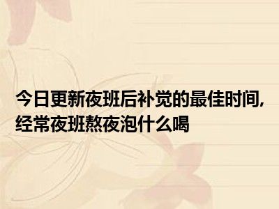 目前大家应该是对夜班后补觉的最佳时间,经常夜班熬夜泡什么喝比较感兴趣的,所以今天小编CC就来为大家整理了一些关于夜班后补觉的最佳时间,经常夜班熬夜泡什么喝方面的相关知识来分享给大家,希望大家会喜欢哦。