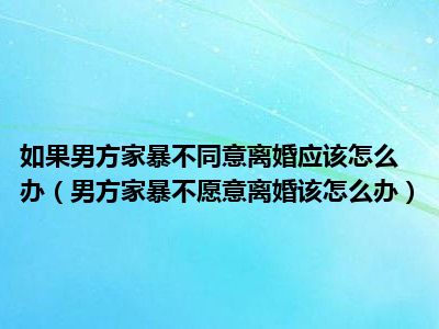 目前大家应该是对男方家暴不愿意离婚该怎么办比较感兴趣的,所以今天CC就来为大家整理了一些关于男方家暴不愿意离婚该怎么办方面的相关知识来分享给大家,希望大家会喜欢哦。