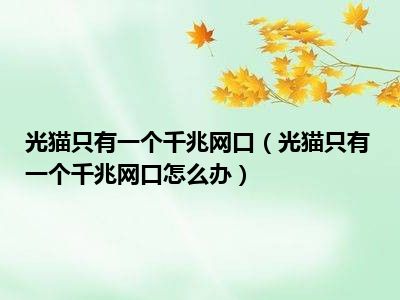 导读 1、光猫只有一个千兆网口怎么办2、猫只有一个千兆网口连接路由器和千兆网口,电脑等其他设备都可以连接路由器使用。3、路由器也可以称为网