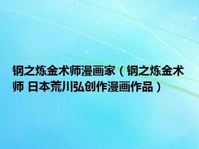导读 目前是有很多朋友们对于钢之炼金术师 日本荒川弘创作漫画作品这个信息比较感兴趣,那么小编也是收集了一些钢之炼金术师 日本荒川弘创作漫...
