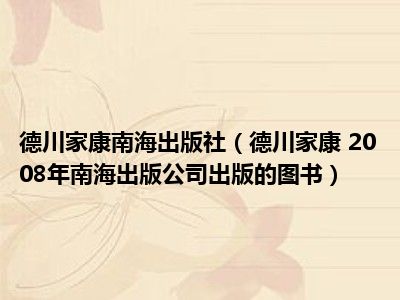 导读 目前是有很多朋友们对于德川家康 2008年南海出版公司出版的图书这个信息比较感兴趣,那么小编也是收集了一些德川家康 2008年南海出版公司...