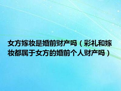 目前大家应该是对彩礼和嫁妆都属于女方的婚前个人财产吗比较感兴趣的,所以今天CC就来为大家整理了一些关于彩礼和嫁妆都属于女方的婚前个人财产吗方面的相关知识来分享给大家,希望大家会喜欢哦。