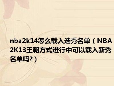 相信目前很多小伙伴对于NBA2K13王朝方式进行中可以载入新秀名单吗?都比较感兴趣,那么小编今天在网上也是收集了一些与NBA2K13王朝方式进行中可以载入新秀名单吗?相关的信息来分享给大家,希望能够帮助到大家哦。
