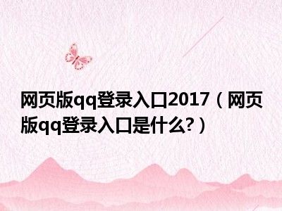 相信目前很多小伙伴对于网页版qq登录入口是什么?都比较感兴趣,那么小编今天在网上也是收集了一些与网页版qq登录入口是什么?相关的信息来分享给大家,希望能够帮助到大家哦。