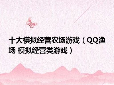 导读 目前是有很多朋友们对于QQ渔场 模拟经营类游戏这个信息比较感兴趣,那么小编也是收集了一些QQ渔场 模拟经营类游戏相关的信息来分享给大家...