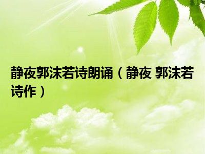 导读 目前是有很多朋友们对于静夜 郭沫若诗作这个信息比较感兴趣,那么小编也是收集了一些静夜 郭沫若诗作相关的信息来分享给大家,希望你会喜...