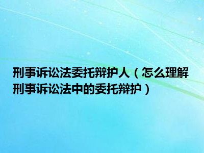 目前大家应该是对怎么理解刑事诉讼法中的委托辩护比较感兴趣的,所以今天CC就来为大家整理了一些关于怎么理解刑事诉讼法中的委托辩护方面的相关知识来分享给大家,希望大家会喜欢哦。