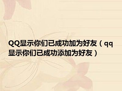 导读 1、qq显示你们已成功添加为好友2、qq显示你们已成功添加为好友说明你和对方已经成为朋友,也就是好友添加成功。3、QQ是腾讯QQ的简称,是一