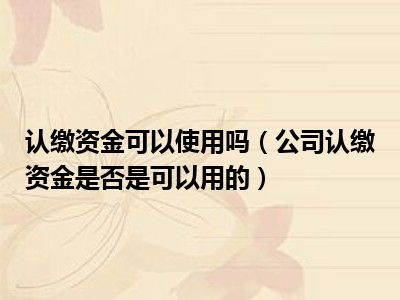 目前大家应该是对公司认缴资金是否是可以用的比较感兴趣的,所以今天CC就来为大家整理了一些关于公司认缴资金是否是可以用的方面的相关知识来分享给大家,希望大家会喜欢哦。
