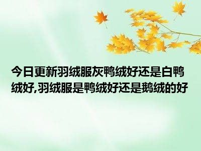 目前大家应该是对羽绒服灰鸭绒好还是白鸭绒好,羽绒服是鸭绒好还是鹅绒的好比较感兴趣的,所以今天小编CC就来为大家整理了一些关于羽绒服灰鸭绒好还是白鸭绒好,羽绒服是鸭绒好还是鹅绒的好方面的相关知识来分享给大家,希望大家会喜欢哦。