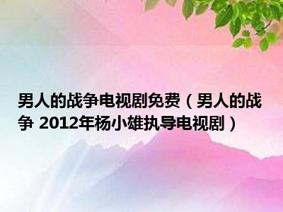 导读 目前是有很多朋友们对于男人的战争 2012年杨小雄执导电视剧这个信息比较感兴趣,那么小编也是收集了一些男人的战争 2012年杨小雄执导电视
