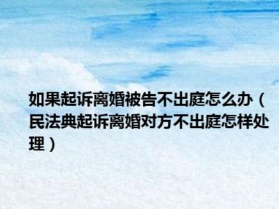 目前大家应该是对民法典起诉离婚对方不出庭怎样处理比较感兴趣的,所以今天CC就来为大家整理了一些关于民法典起诉离婚对方不出庭怎样处理方面的相关知识来分享给大家,希望大家会喜欢哦。