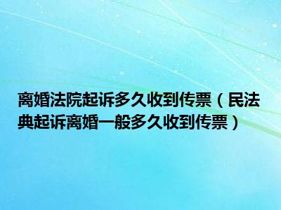 目前大家应该是对民法典起诉离婚一般多久收到传票比较感兴趣的,所以今天CC就来为大家整理了一些关于民法典起诉离婚一般多久收到传票方面的相关知识来分享给大家,希望大家会喜欢哦。