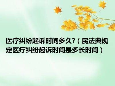 民法典规定医疗纠纷起诉时间为3年。当事人在遇到医疗纠纷后,不想与对方协商调解的,一定要尽快收集证据,然后在3年时间内向人民法院提起诉讼,要不然可能要承担败诉的风险。