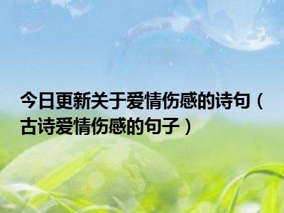 目前上述的内容应该能够为大家解答出大家对于关于爱情伤感的诗句(古诗爱情伤感的句子)的疑惑了,所以如果大家还想要了解更多的知识内容,也可以关注本站其他文章进行了解哦。