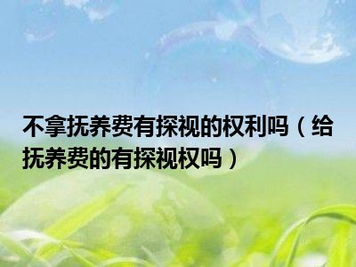 目前大家应该是对给抚养费的有探视权吗比较感兴趣的,所以今天CC就来为大家整理了一些关于给抚养费的有探视权吗方面的相关知识来分享给大家,希望大家会喜欢哦。