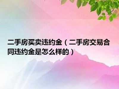 目前大家应该是对二手房交易合同违约金是怎么样的比较感兴趣的,所以今天CC就来为大家整理了一些关于二手房交易合同违约金是怎么样的方面的相关知识来分享给大家,希望大家会喜欢哦。
