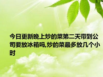 目前大家应该是对晚上炒的菜第二天带到公司要放冰箱吗,炒的菜最多放几个小时比较感兴趣的,所以今天小编CC就来为大家整理了一些关于晚上炒的菜第二天带到公司要放冰箱吗,炒的菜最多放几个小时方面的相关知识来分享给大家,希望大家会喜欢哦。