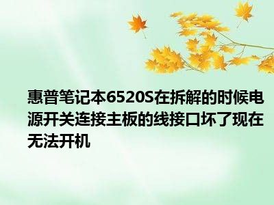 相信目前很多小伙伴对于求助 惠普笔记本6520S 在拆机时,把电源开关和主板相连的那条线的接口坏了,现在开不了机了都比较感兴趣,那么小编今天在网上也是收集了一些与求助 惠普笔记本6520S 在拆机时,把电源开关和主板相连的那条线的接口坏了,现在开不了机了相关的信息来分享给大家,希望能够帮助到大家哦。