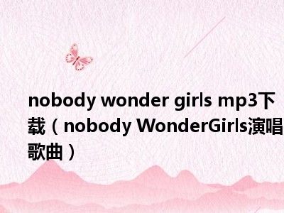 导读 目前是有很多朋友们对于nobody WonderGirls演唱歌曲这个信息比较感兴趣,那么小编也是收集了一些nobody WonderGirls演唱歌曲相关的信息来...