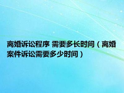 诉讼离婚程序要三到六个月长时间。如果人民法院适用简易程序审理离婚案件的,诉讼期限为三个月。如果人民法院适用普通程序审理离婚案件的,诉讼期限为六个月。