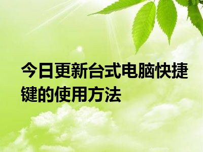 目前上述的内容应该能够为大家解答出大家对于台式电脑快捷键的使用方法的疑惑了,所以如果大家还想要了解更多的知识内容,也可以关注本站其他文章进行了解哦。