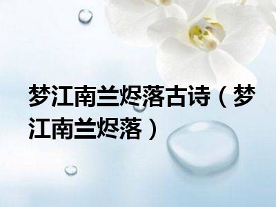 导读目前是有很多朋友们对于梦江南·兰烬落这个信息比较感兴趣,那么小编也是收集了一些梦江南·兰烬落相关的信息来分享给大家,希望你会喜欢哦...