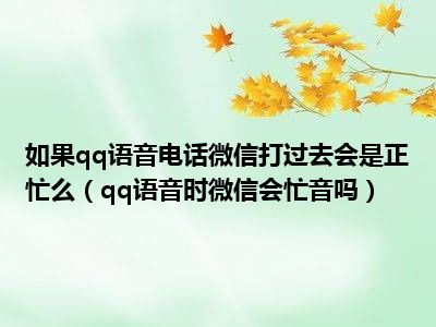 导读 1、qq语音时微信会忙音吗2、肯定会这样。对于麦克风的权限,通话是第一位的,微信和qq的权限是对等的,因为你只能占用一个,qq和微信是没有