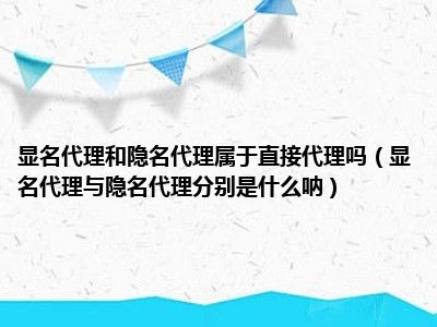 目前大家应该是对显名代理与隐名代理分别是什么呐比较感兴趣的,所以今天CC就来为大家整理了一些关于显名代理与隐名代理分别是什么呐方面的相关知识来分享给大家,希望大家会喜欢哦。