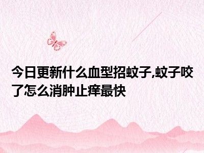 目前大家应该是对什么血型招蚊子,蚊子咬了怎么消肿止痒最快比较感兴趣的,所以今天小编CC就来为大家整理了一些关于什么血型招蚊子,蚊子咬了怎么消肿止痒最快方面的相关知识来分享给大家,希望大家会喜欢哦。