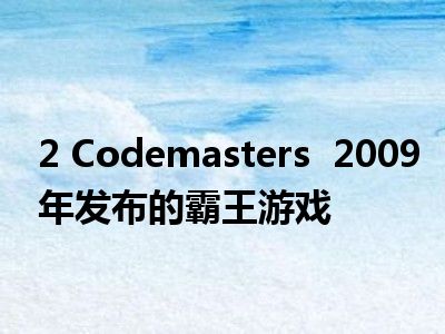 导读 目前是有很多朋友们对于霸王2 2009年Codemasters发行的游戏这个信息比较感兴趣,那么小编也是收集了一些霸王2 2009年Codemasters发行的游
