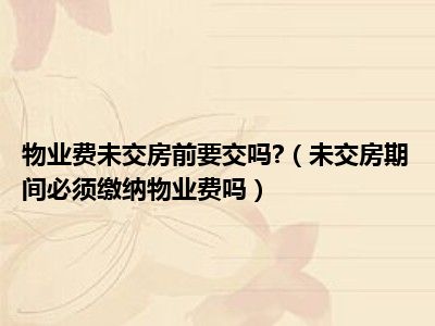 目前大家应该是对未交房期间必须缴纳物业费吗比较感兴趣的,所以今天CC就来为大家整理了一些关于未交房期间必须缴纳物业费吗方面的相关知识来分享给大家,希望大家会喜欢哦。