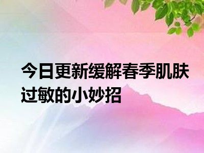 目前上述的内容应该能够为大家解答出大家对于缓解春季肌肤过敏的小妙招的疑惑了,所以如果大家还想要了解更多的知识内容,也可以关注本站其他文章进行了解哦。