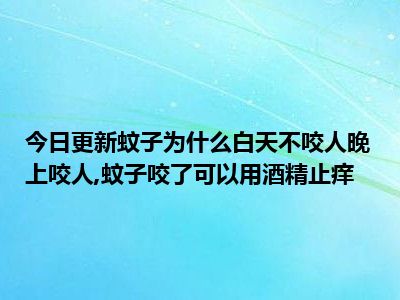 目前大家应该是对蚊子为什么白天不咬人晚上咬人,蚊子咬了可以用酒精止痒比较感兴趣的,所以今天小编CC就来为大家整理了一些关于蚊子为什么白天不咬人晚上咬人,蚊子咬了可以用酒精止痒方面的相关知识来分享给大家,希望大家会喜欢哦。