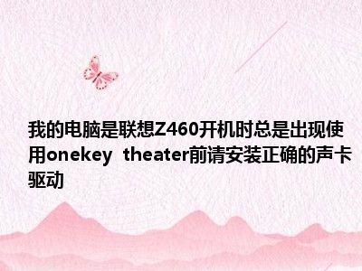 相信目前很多小伙伴对于我的电脑是联想Z460,开机的时候总会出现“使用onekey theater 前请安装正确的声卡驱动程序” 那时联想的都比较感兴趣,那么小编今天在网上也是收集了一些与我的电脑是联想Z460,开机的时候总会出现“使用onekey theater 前请安装正确的声卡驱动程序” 那时联想的相关的信息来分享给大家,希望能够帮助到大家哦。