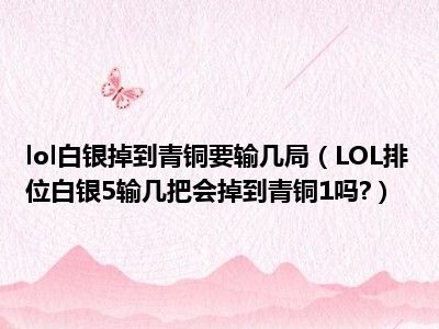 相信目前很多小伙伴对于LOL排位白银5输几把会掉到青铜1吗?都比较感兴趣,那么小编今天在网上也是收集了一些与LOL排位白银5输几把会掉到青铜1吗?相关的信息来分享给大家,希望能够帮助到大家哦。