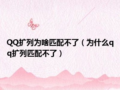 1、 为什么qq扩列匹配不了