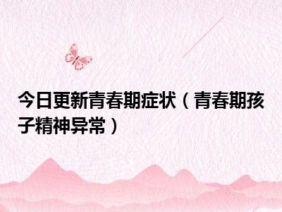 目前上述的内容应该能够为大家解答出大家对于青春期症状(青春期孩子精神异常)的疑惑了,所以如果大家还想要了解更多的知识内容,也可以关注本站其他文章进行了解哦。