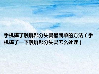 相信目前很多小伙伴对于手机摔了一下触屏部分失灵怎么处理都比较感兴趣,那么小编今天在网上也是收集了一些与手机摔了一下触屏部分失灵怎么处理相关的信息来分享给大家,希望能够帮助到大家哦。