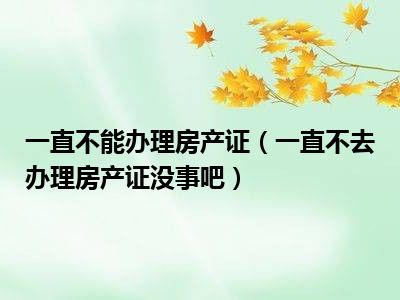 目前大家应该是对一直不去办理房产证没事吧比较感兴趣的,所以今天CC就来为大家整理了一些关于一直不去办理房产证没事吧方面的相关知识来分享给大家,希望大家会喜欢哦。
